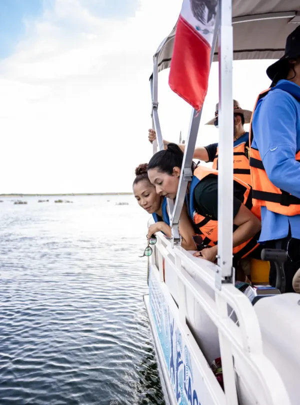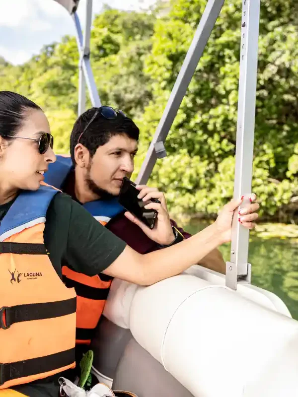 La aventura comienza afuera del Puerto de Costa Maya, donde nuestro guía te recibirá para iniciar el traslado en van con aire acondicionado hacia Bacalar (aprox. 70 minutos). Al llegar, embarcaremos en un pontón moderno y seguro.